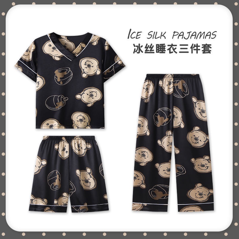 Traje De Pijama De Seda De Hielo Para Ninos De Tres Piezas Verano Y Ninas Pantalones Cortos De Manga Corta De Dibujos Animados Casa Aire Conditi Shopee Mexico