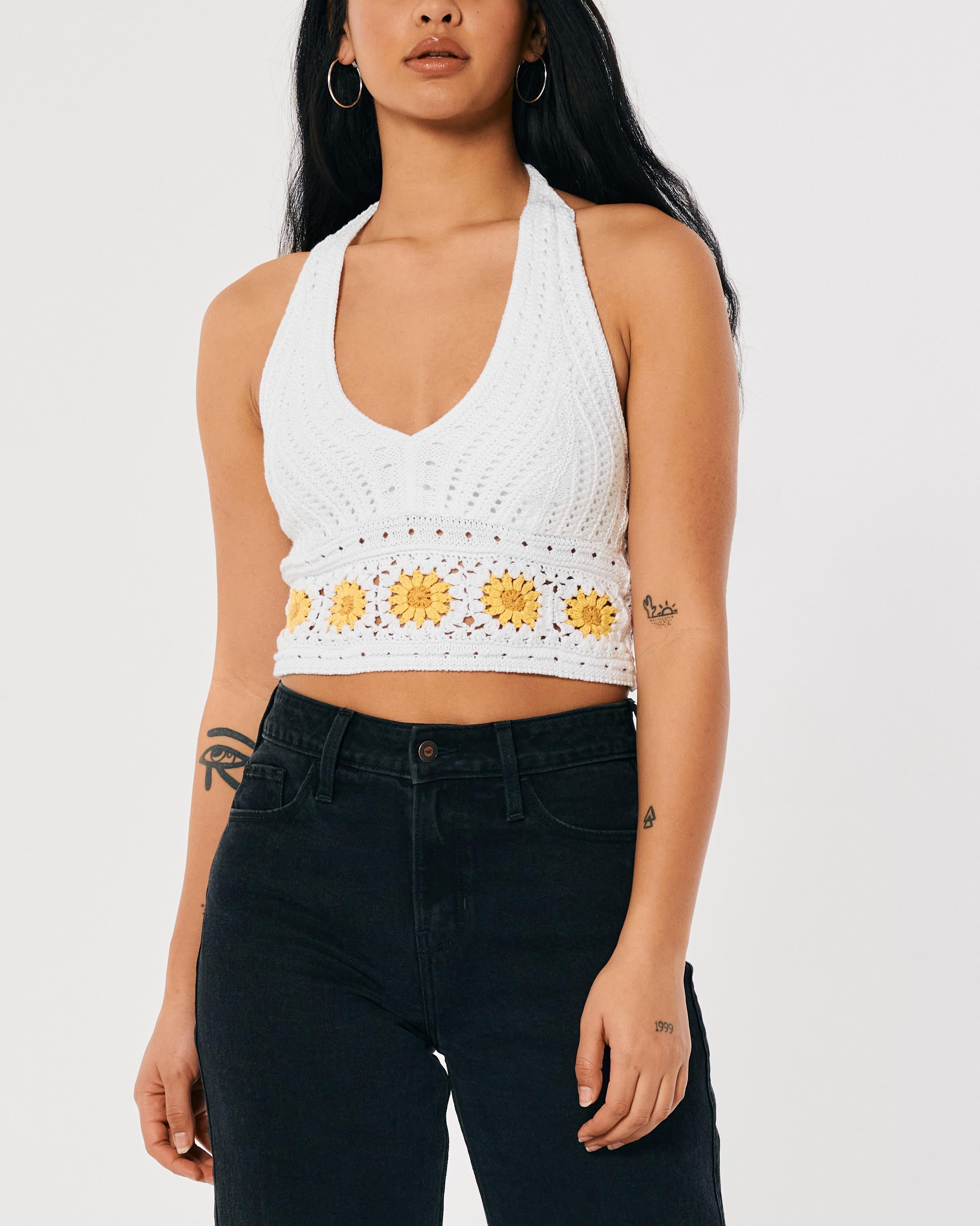 Hollister Crochet Crop Halter Tank In White Lyst Uk